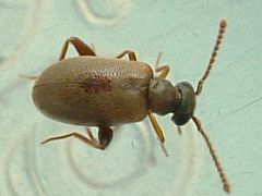 11/05/20 体長2.7ミリ。日本産ヒラタムシ上科図説(第2巻)に詳しく載っているが、ホソミツカドホソヒラタムシ(3.0〜3.5ミリ)との境界はよく判らなかった。一応、ブナホソヒラタムシ(2.4〜3.1ミリ)としたのは体長から導き出した答え。 |