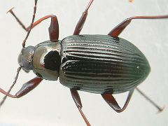 上翅は黒く前胸は赤い。クモの糸で見苦しいが、浅い縦溝が等間隔に並ぶ。 |