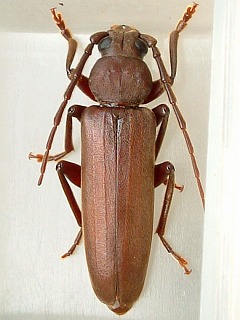 12/06/18 体長20.8ミリ。かつてムナクボカミキリと呼ばれた。前胸は凹まないが凹む近似種も多く、混乱を避ける意味で新和名が提唱されたのだろう。灯火によく飛来する。 |