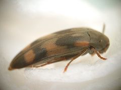 12/07/09 最近、甲虫の採集法が大きく変わる。やたら叩きまくるビーディングは影をひそめ、地面に落ちている朽ちた枝を拾ってはビニール傘の上で叩く法が主流となった。このチビキカワムシもよく落ちる甲虫のひとつだ。 |