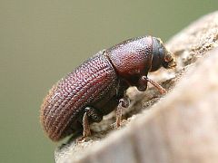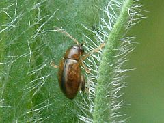07/05/07 このマメゾウムシのホストはクズである。「葛」は種子を利用しないため他のマメゾウムシと異なり害虫扱いされることもないのだろう。 |