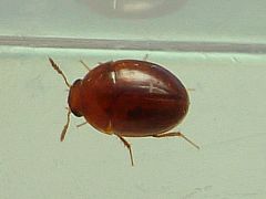 08/09/18 体長約2ミリ。上翅には点刻列を欠く。ヒラタケから得られたが、各種のキノコに普通にいるという。 |
