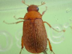 体長4.0ミリ。昨年たびたび不明種として登場したゾウムシだ。図鑑に該当種はなかったが、たまたま月刊むしの「タマムシ特集号」(420号)に画像入りの小記事を見つけ判明した。