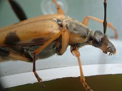 前胸が唐金色で強い光沢があるとカラカネナカボソタマムシではないかとつい見入ってしまうが上翅端のトゲ突起の有無や体長などで簡単に分別できる。 |