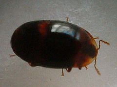 10/04/06 体長4.3ミリ。ウスモンツヤゴミムシダマシとかアシグロツヤゴミムシダマシの仲間だと思われるが、紋はないし脚も黒くない・・・。 |