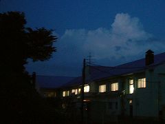 10/07/07 東北電力による高圧線下の下草(低木)刈りが進められているようだ。今は昼休みなのかうるさくないけど、奥のほうの電線周囲の草木の色が変わっている。 |